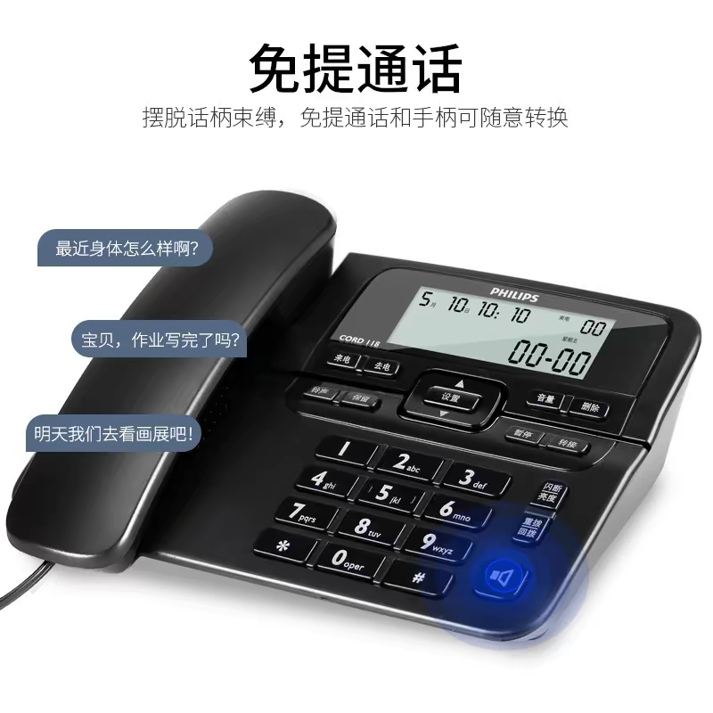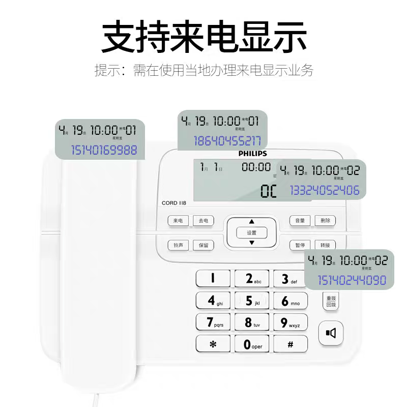 推荐理由:飞利浦CORD118固定电话机座机电话 家用座式有线坐机办公商务固话