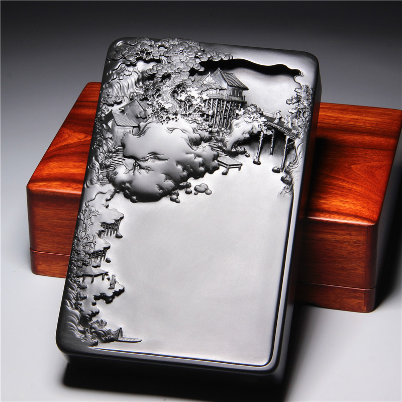 孤品名师老坑砚台/大好河山/精品原石歙砚籽料天然高档文房收藏端