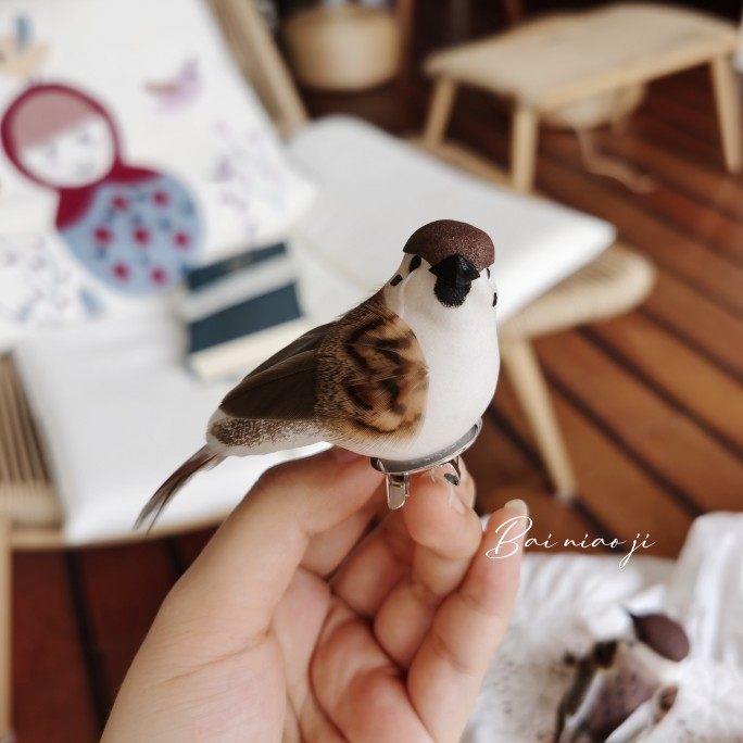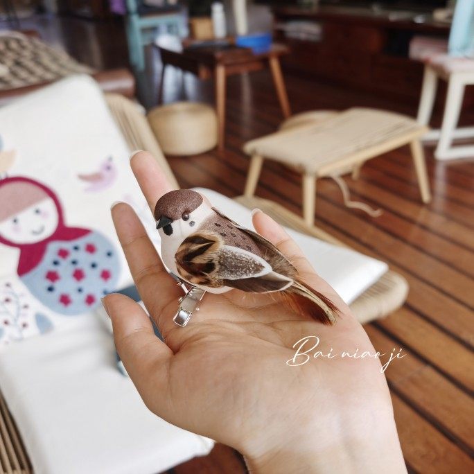 百鸟集原创 善逸查理苏的麻雀雪梨酒同款 仿真小鸟肩章发夹头饰