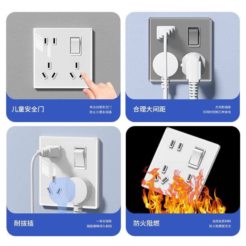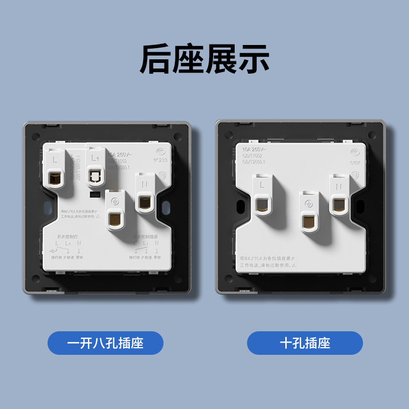 推荐理由:86型十孔插座面板家用墙壁暗装厨房专用电源双5五孔八孔多孔插座