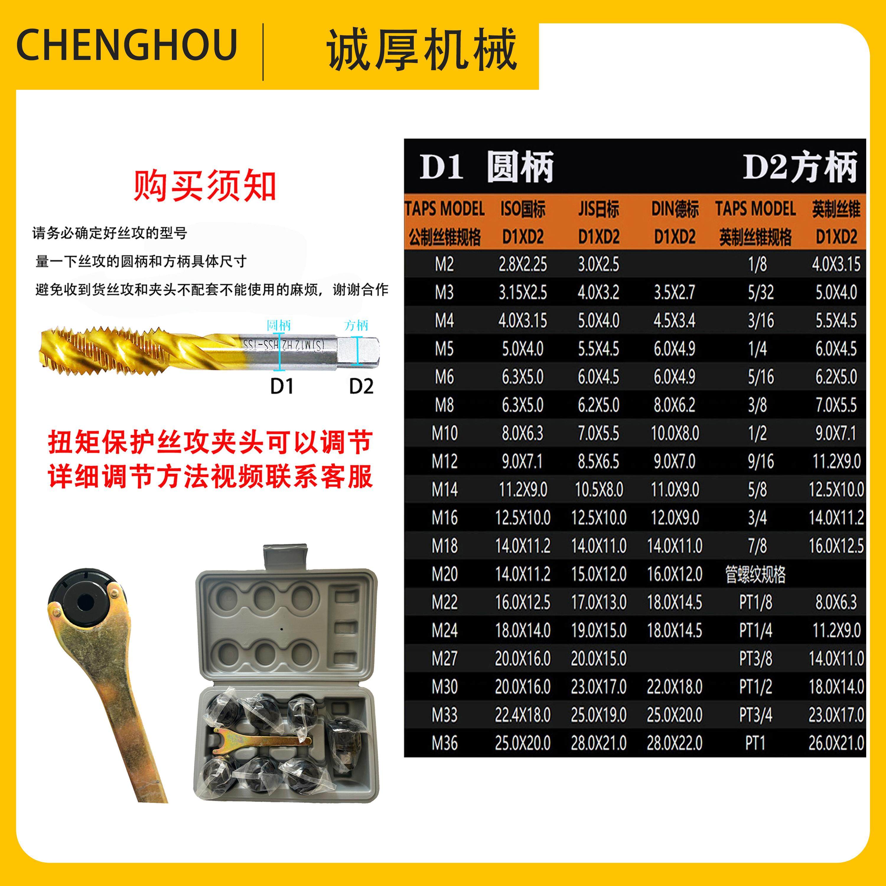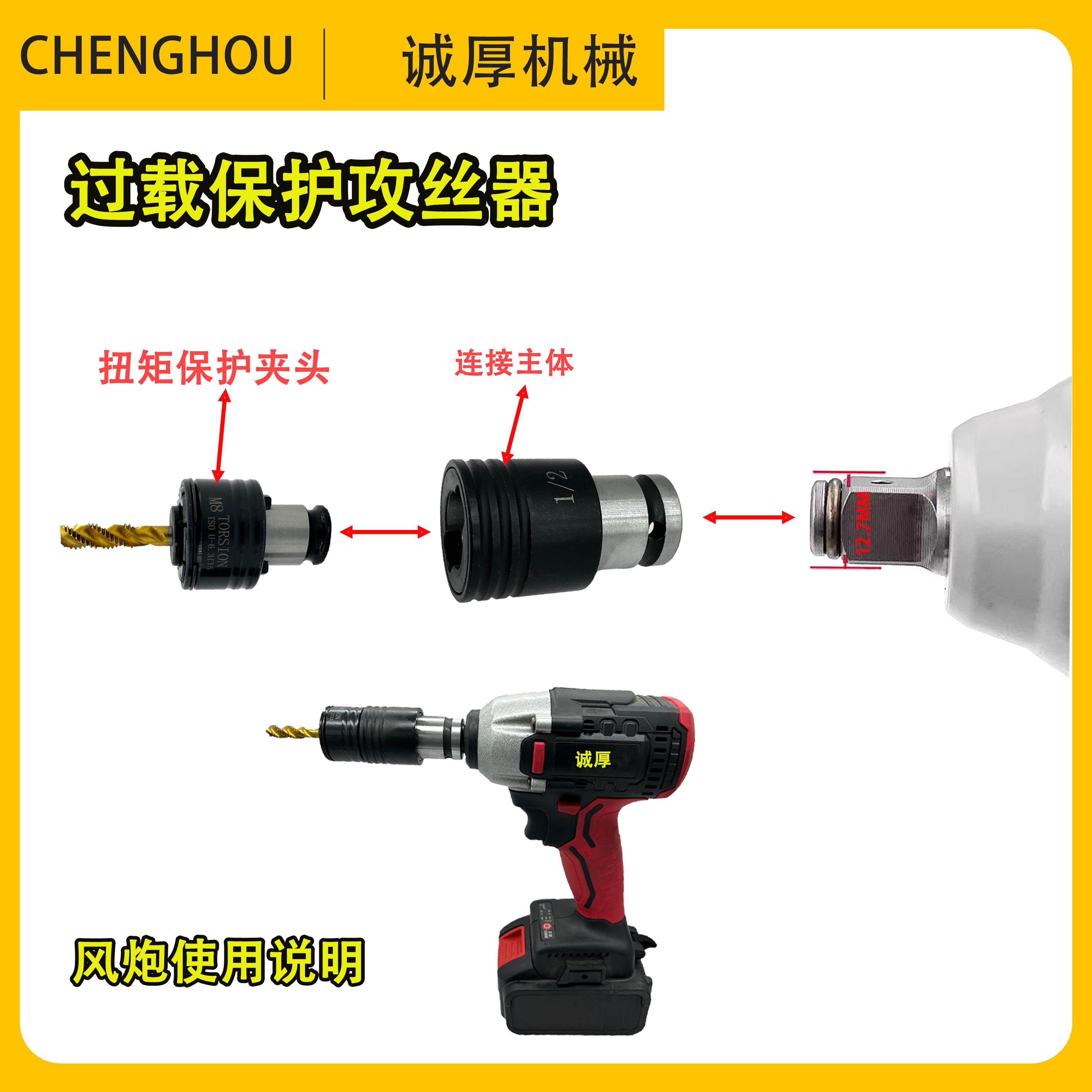 推荐理由:电动扳手风炮丝锥夹头攻丝夹头丝攻套筒防断过载保护手电钻攻丝器