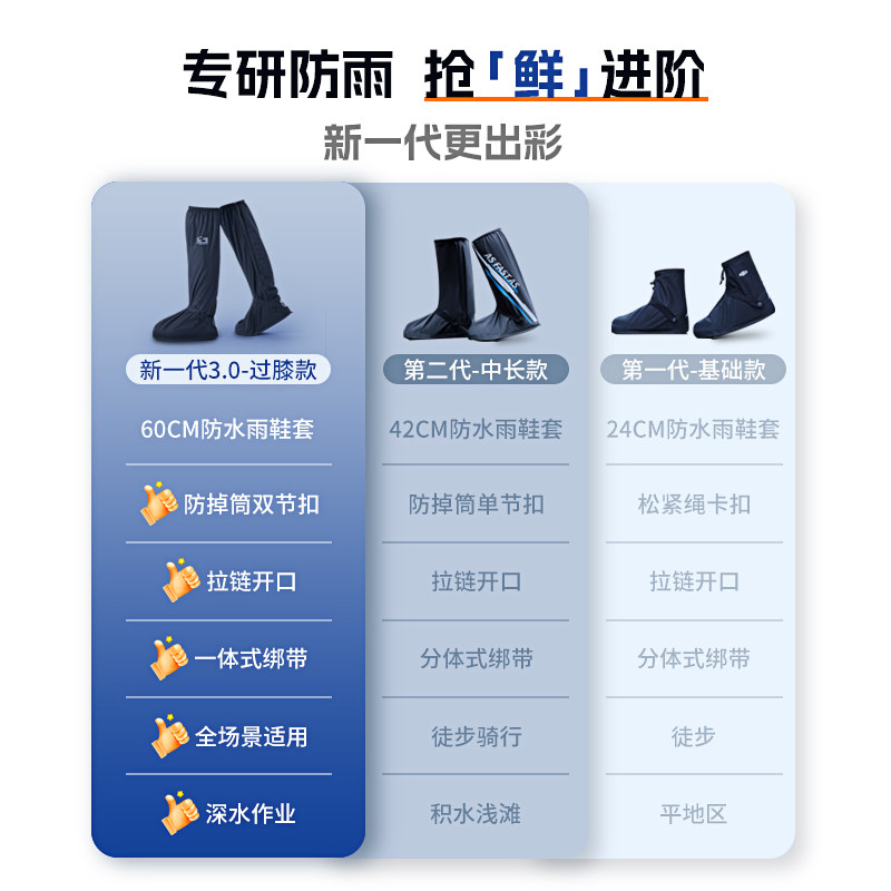 雨鞋套防水防滑加厚耐磨便捷高筒过膝赶海登山防水鞋套男女款雨靴