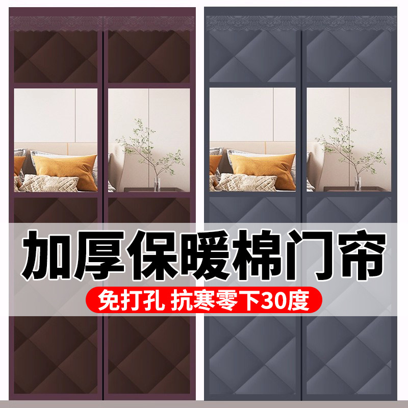 冬季加厚棉门帘家用防风保暖挡风自吸磁铁免打孔开窗口透明隔断帘