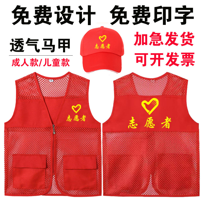 志愿者网眼马甲定制印字logo渔网夏季红背心广告衫义工夏季工作服