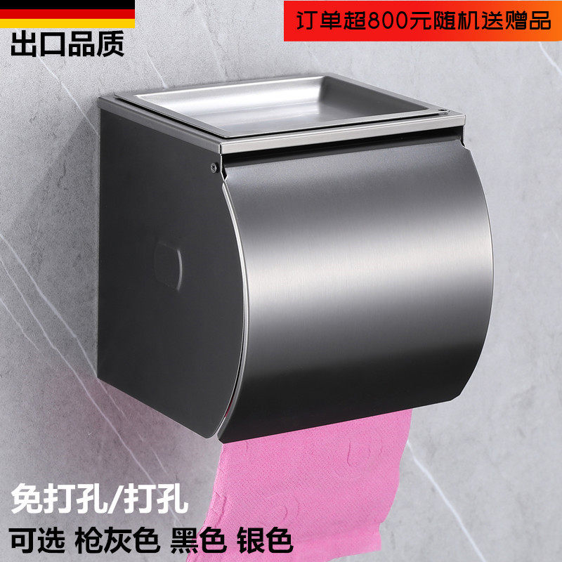 免打孔枪灰色纸巾架卫生间厕所密封式防水卷纸架浴室不锈钢抽纸架