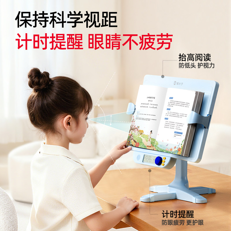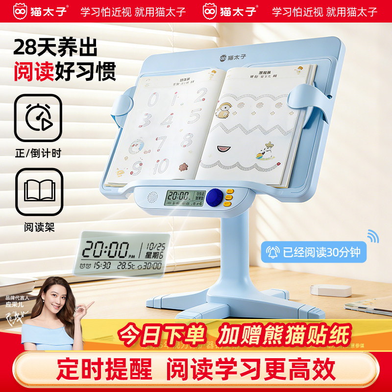 猫太子计时提醒阅读架儿童看书架多功能可升降调节小学生学习书立书本夹桌面阅读看书支架宝宝读书神器小桌子