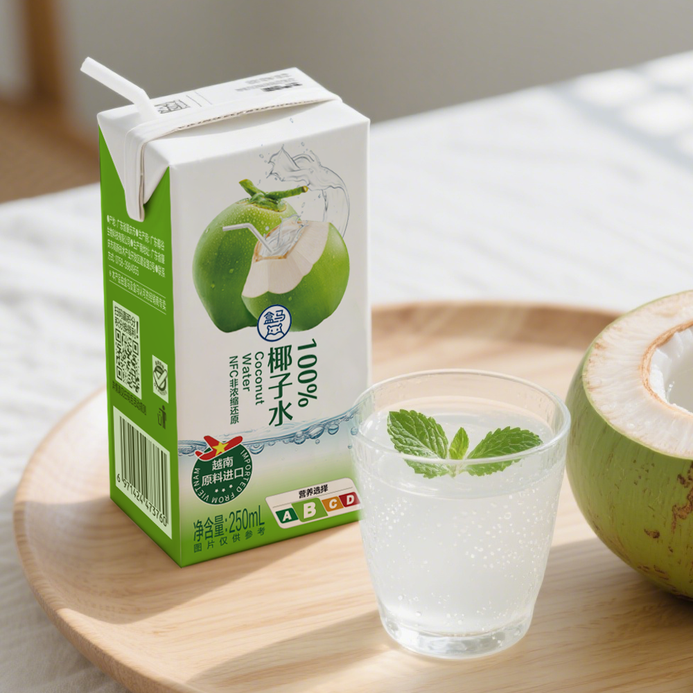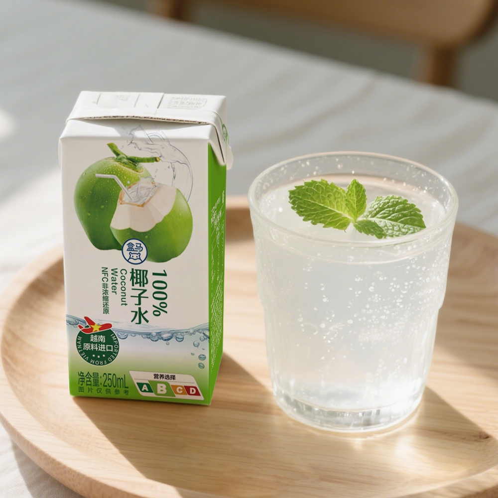 推荐理由:盒马 100%椰子水 250ml*24盒富含电解质NFC椰汁饮料整箱装