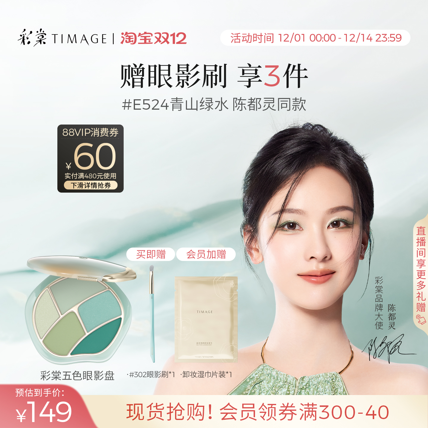 【立即抢购】彩棠TIMAGE踏浪五色眼影青山绿水盘细腻持妆百搭哑光