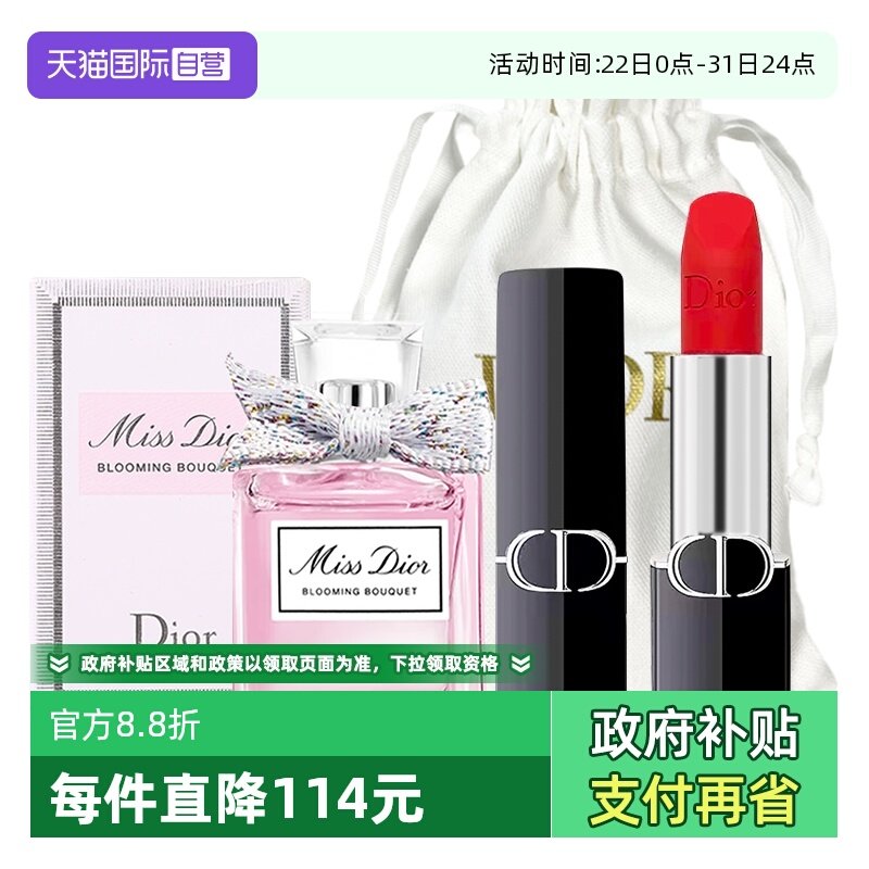 推荐理由:【自营】Dior/迪奥口红香水套装花漾小姐淡香水5ml丝绒999唇膏