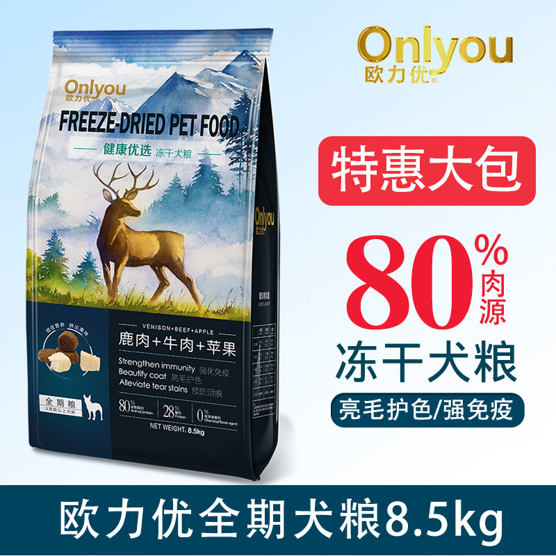 欧力优冻干鹿肉牛肉狗粮宠物金毛泰迪犬通用全犬粮成犬狗粮8.5kg