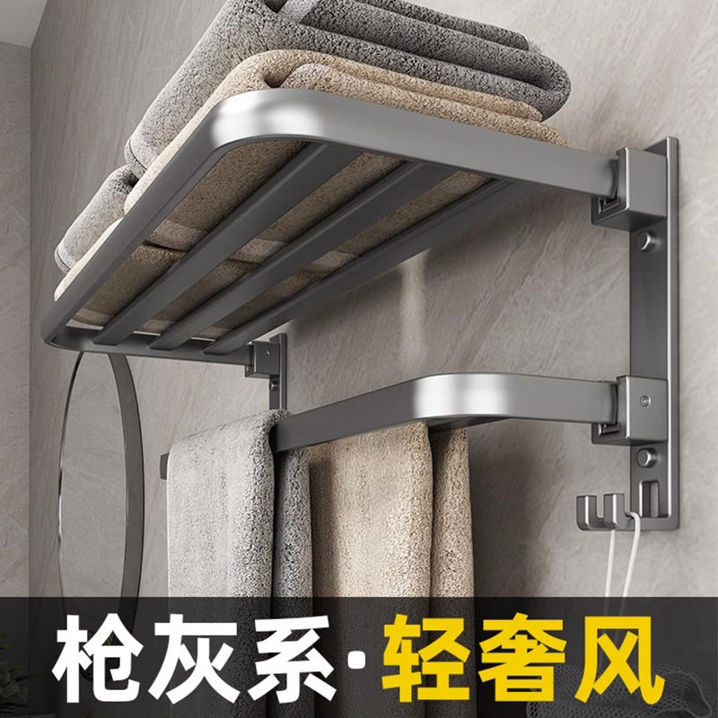 枪灰太空铝毛巾架免打孔壁挂式卫生间厕所浴巾架洗手间浴室置物架