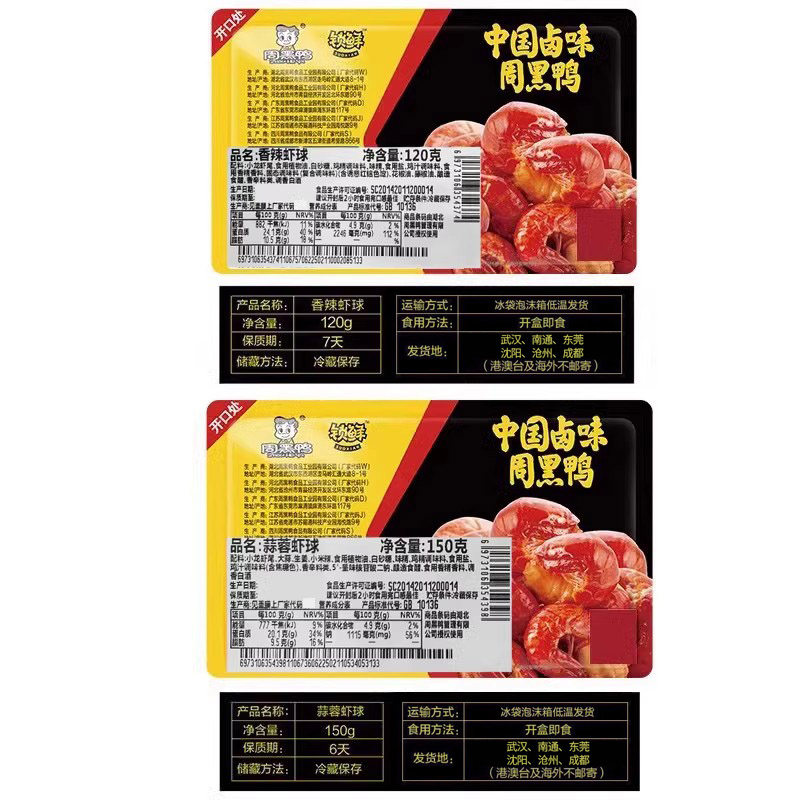 【周黑鸭旗舰店】锁鲜香辣蒜蓉盒装冷吃即食小龙虾虾球虾尾零食