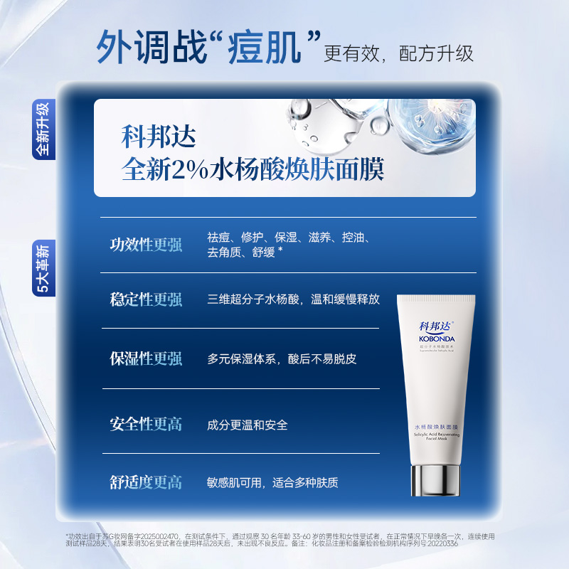 【叠加淘金币到手更优惠!】科邦达水杨酸面膜35g,温和焕肤祛痘,控油保湿+去角质一步到位,敏感肌也安心用~深层疏通毛孔,告别黑头闭口,肌肤细腻又透亮!