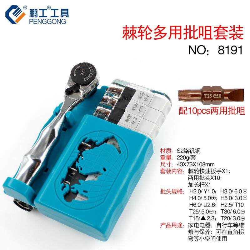 现货供应1/4棘轮扳手螺丝批组套便携迷你两用小螺丝批套装厂