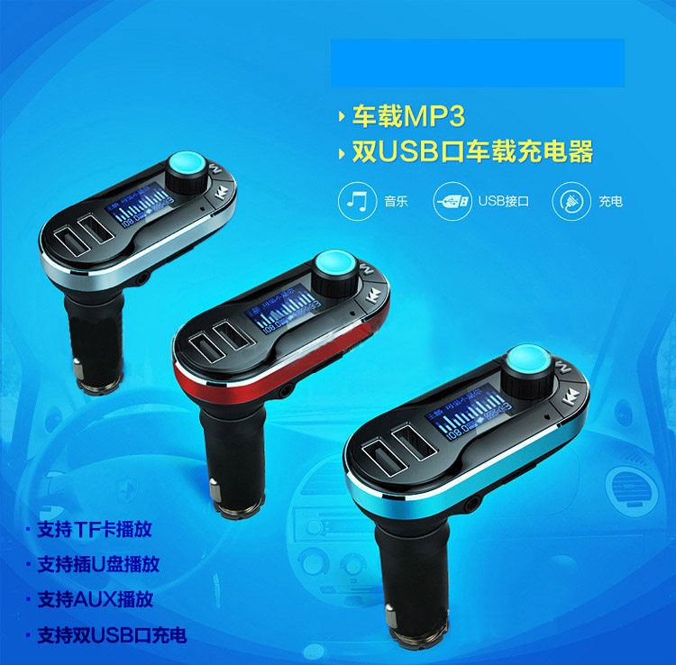 多功能车载mp3双USB汽车充电器 可接U盘TF卡FM发射音乐播放器包邮