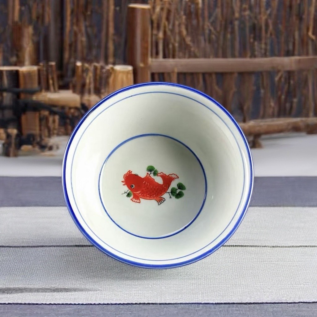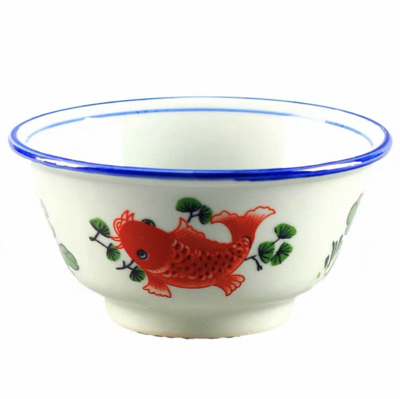 复古高温青瓷釉下彩年年有鱼家用葵斗碗红色鲤鱼加厚防烫陶瓷饭碗