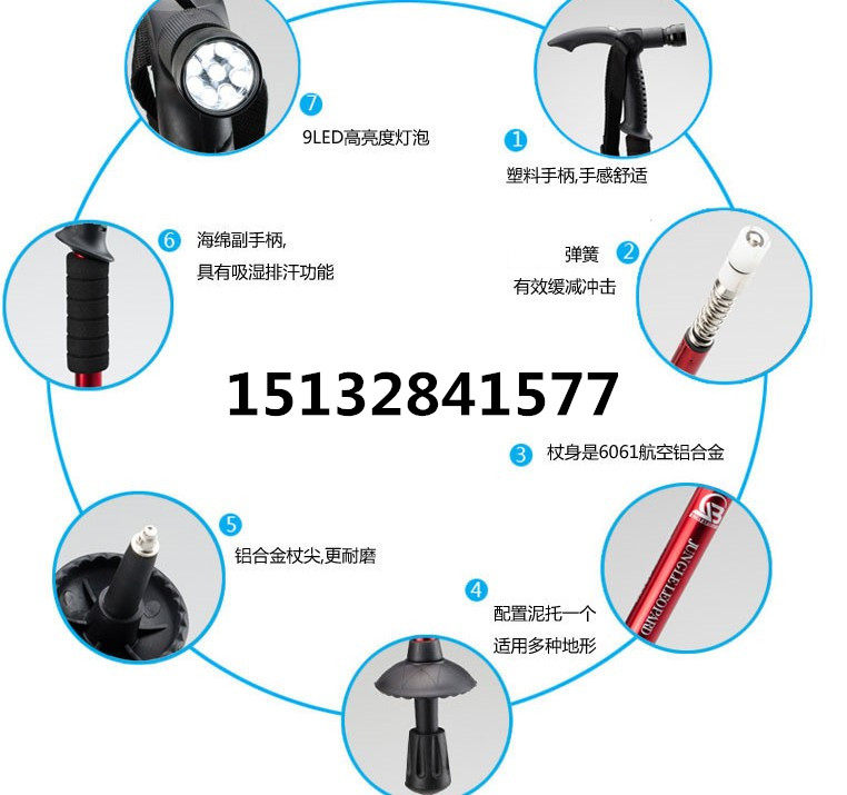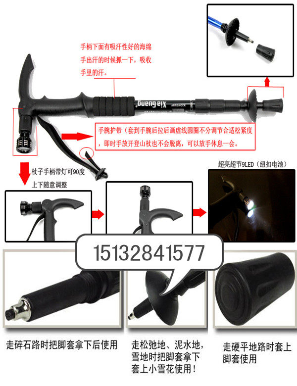 推荐理由:包邮铝合金拐杖 老人用带灯减震手杖/登山手杖/多功能智能拐仗