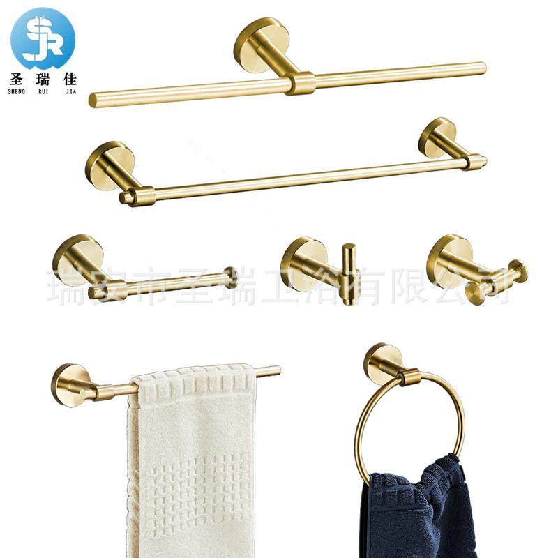 304不锈钢浴室毛巾架套装轻奢金色温州卫浴五金挂件套件毛巾杆