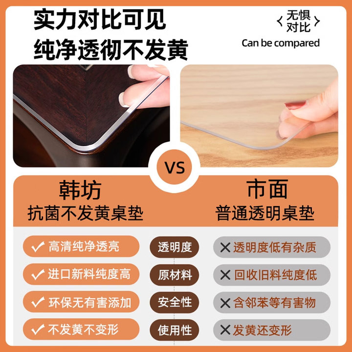 推荐理由:软玻璃桌面垫水晶板免洗防油防烫透明无味PVC胶垫茶几餐桌保护垫