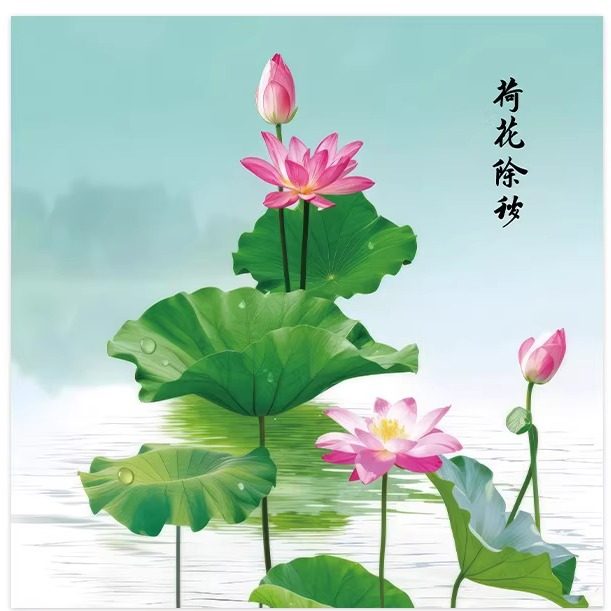 荷花图卫生间贴画莲花画装饰厕所化解净秽专用贴纸防水卫生间门