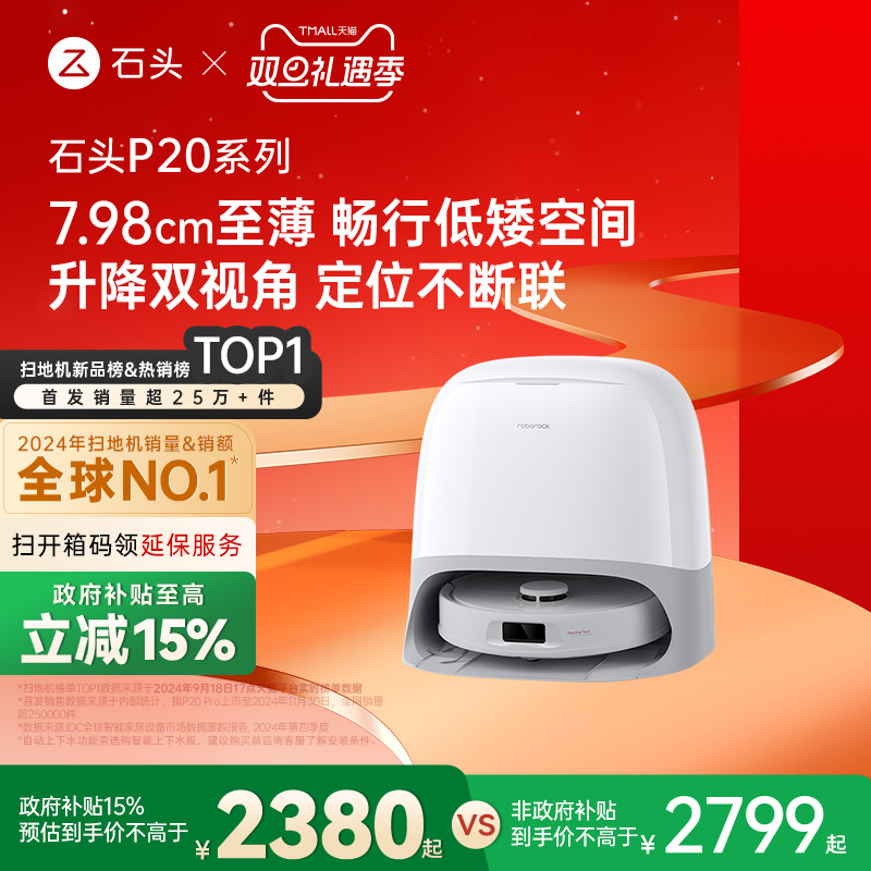 【政府补贴15%】石头P20 Pro/Ultra/Plus扫地机器人拖地一体机0缠