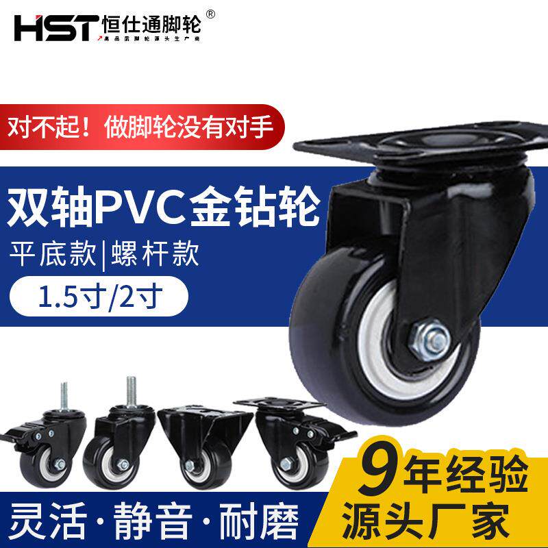 跨境供应1.5寸2寸金钻平底板聚氨酯定向静音万向带刹车脚轮