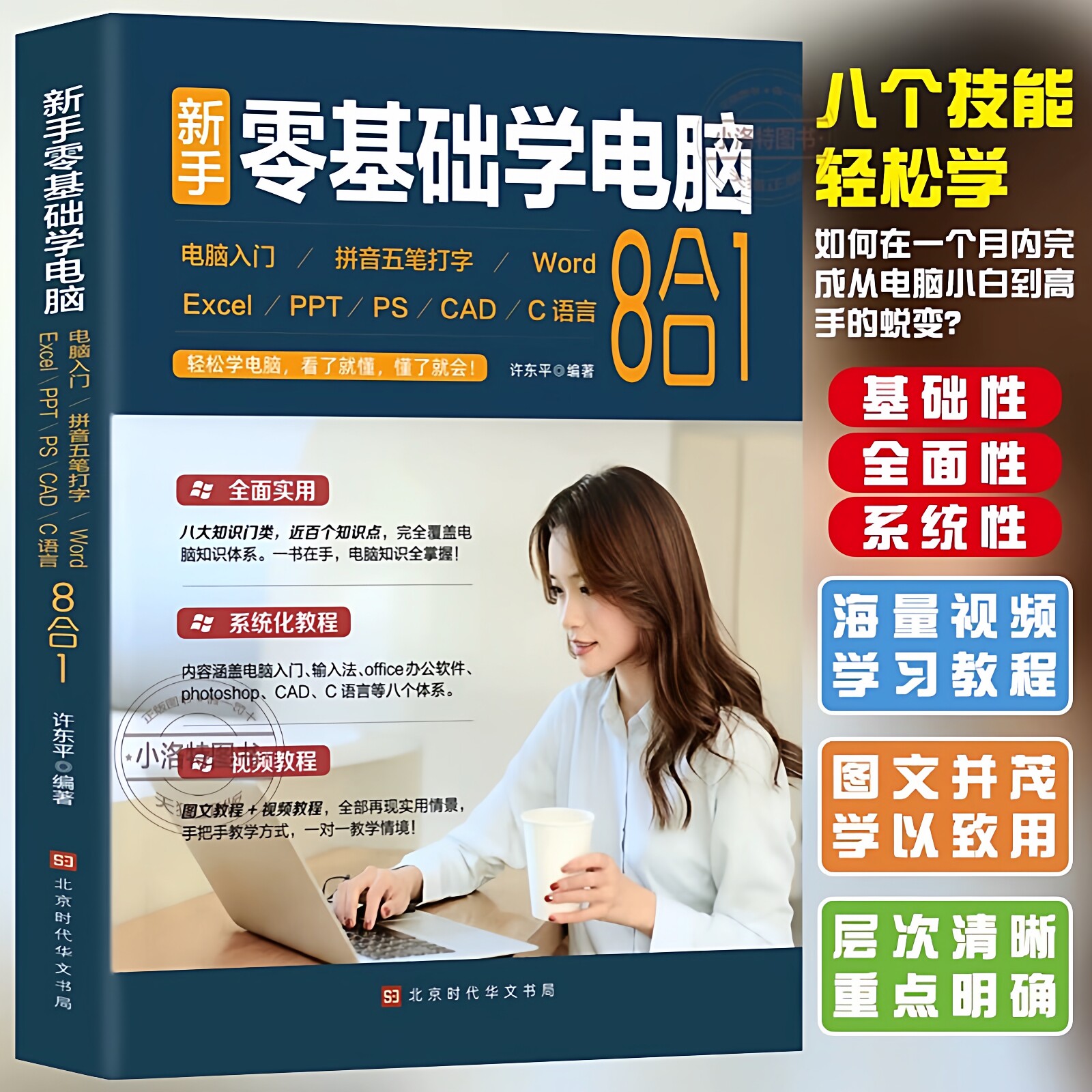 官方正版 零基础学电脑从入门到精通8合1文员办公初级者计算机应用电脑知识书完全自学习手册教材0开始新手教程拼音打字表格一本通