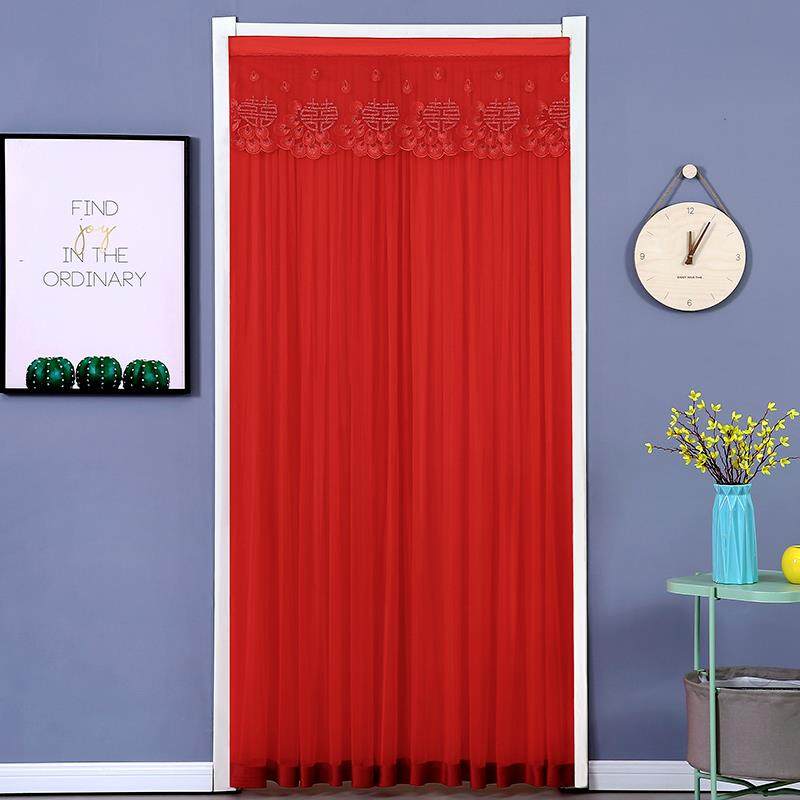 骋益红色门帘免打孔喜庆结婚大红纱帘挂帘卧室防蚊门帘隔断帘新款