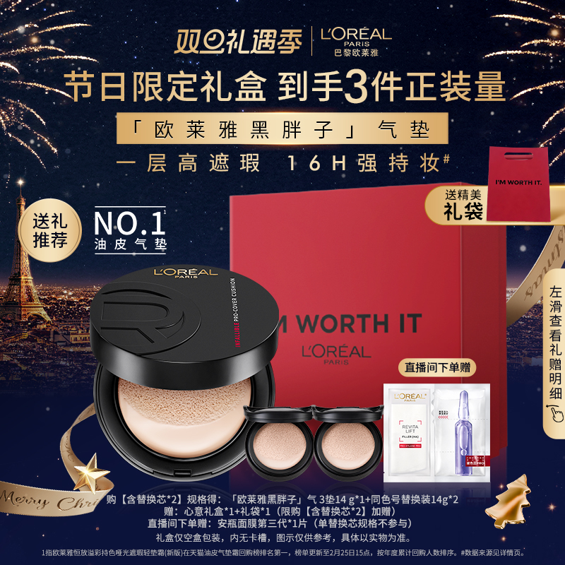 【圣诞礼物】欧莱雅黑胖子气垫新款持妆遮瑕不脱妆控油官方正品女