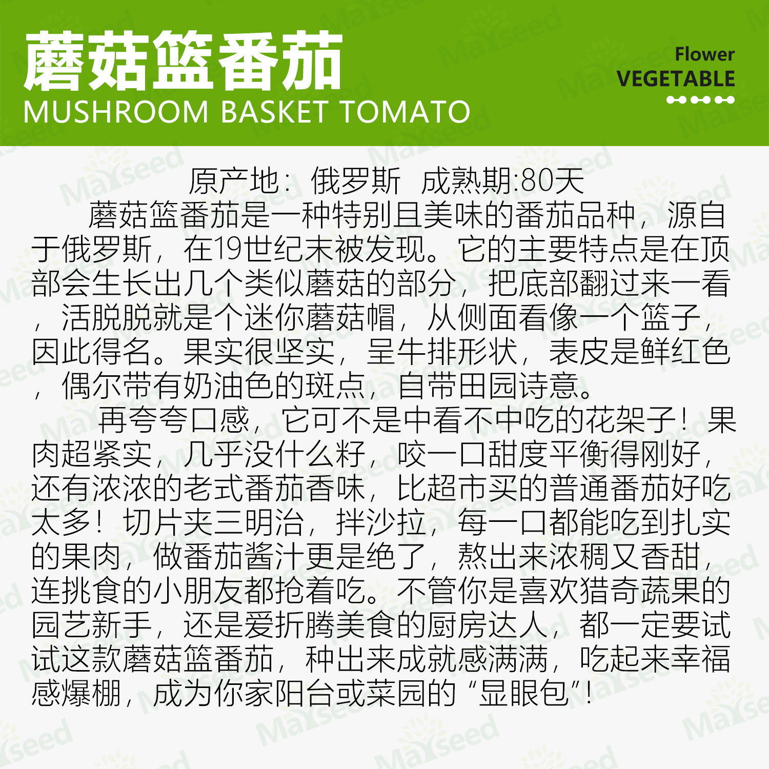 推荐理由:俄罗斯特色蘑菇篮番茄风味浓郁果肉绵密春秋阳台田园蔬菜种子种苗