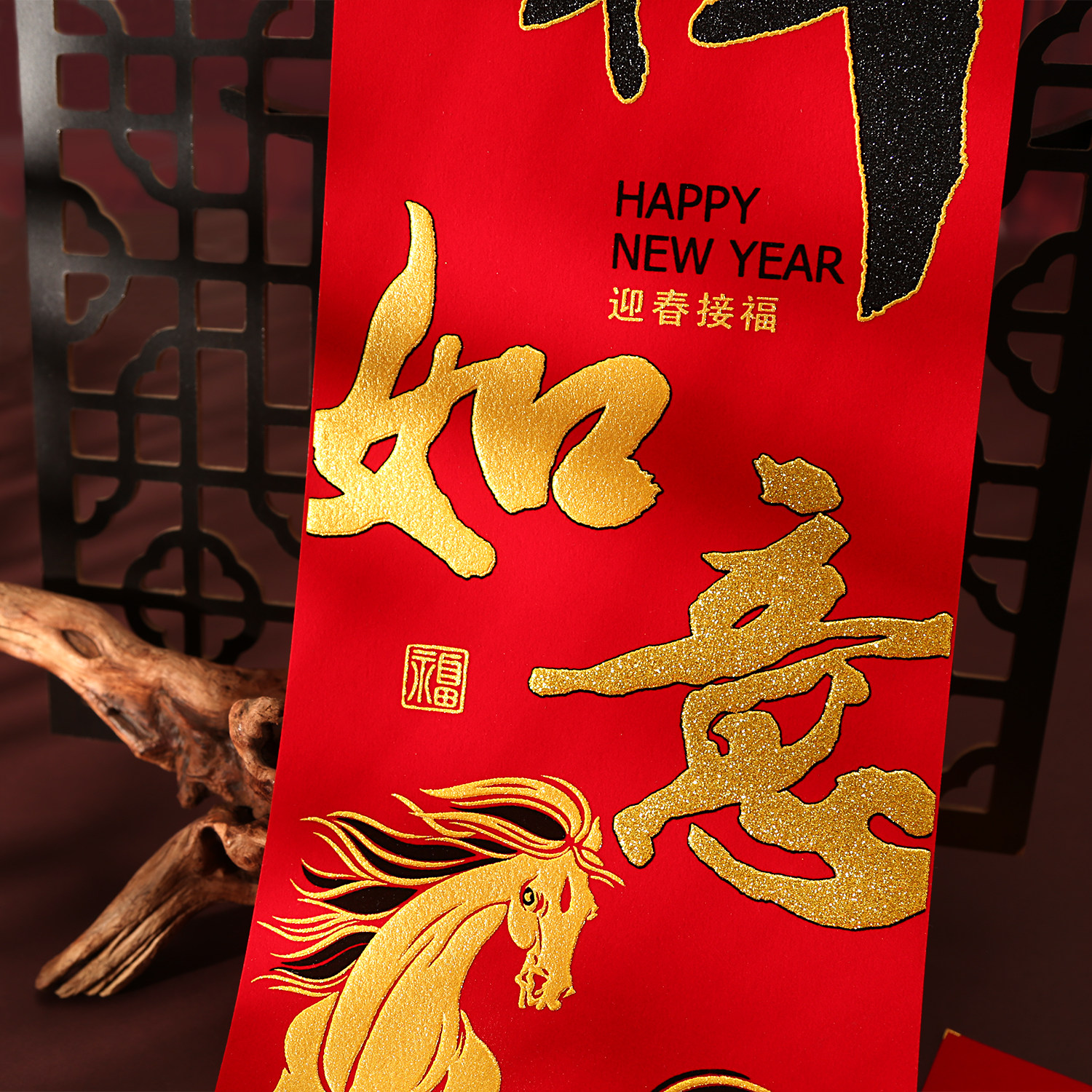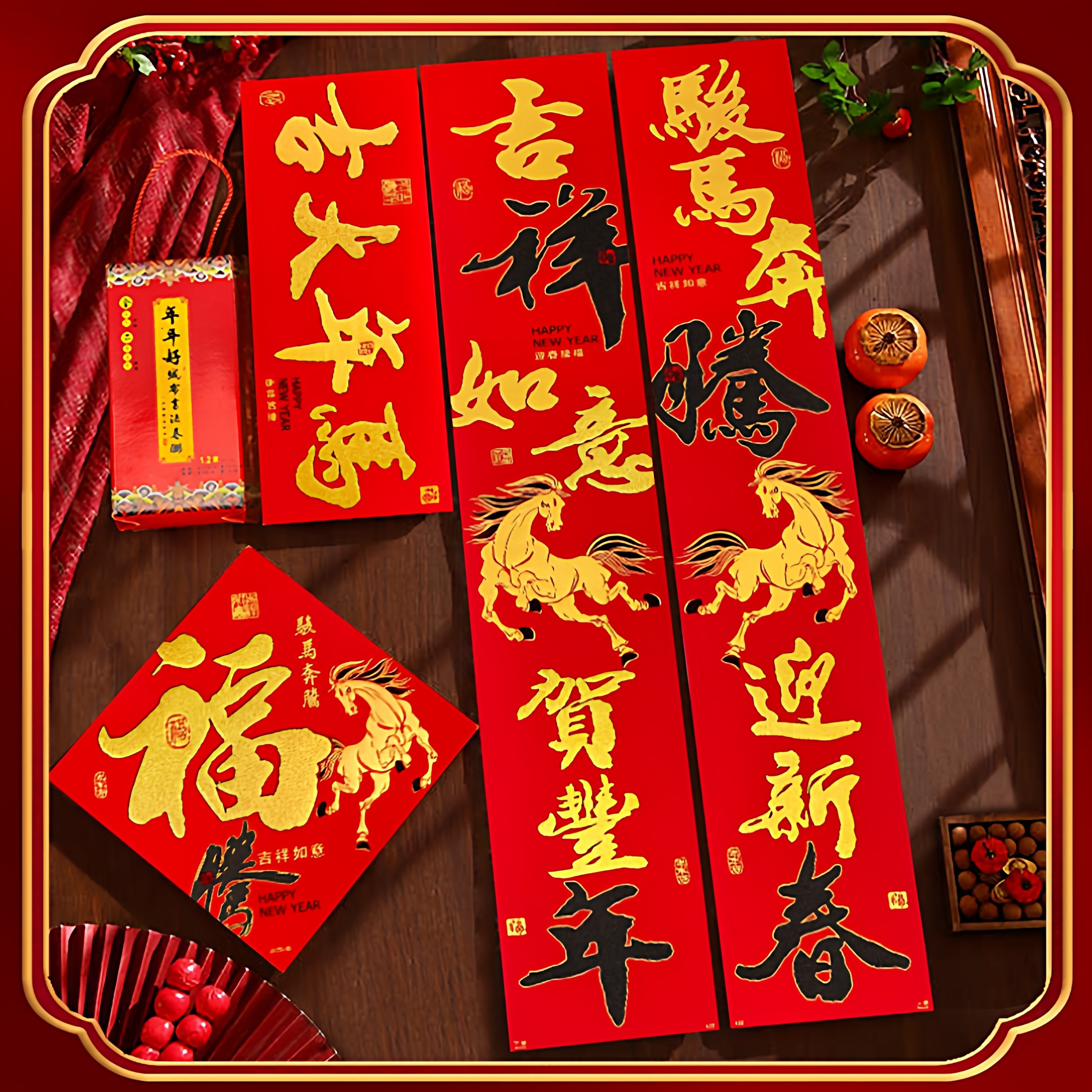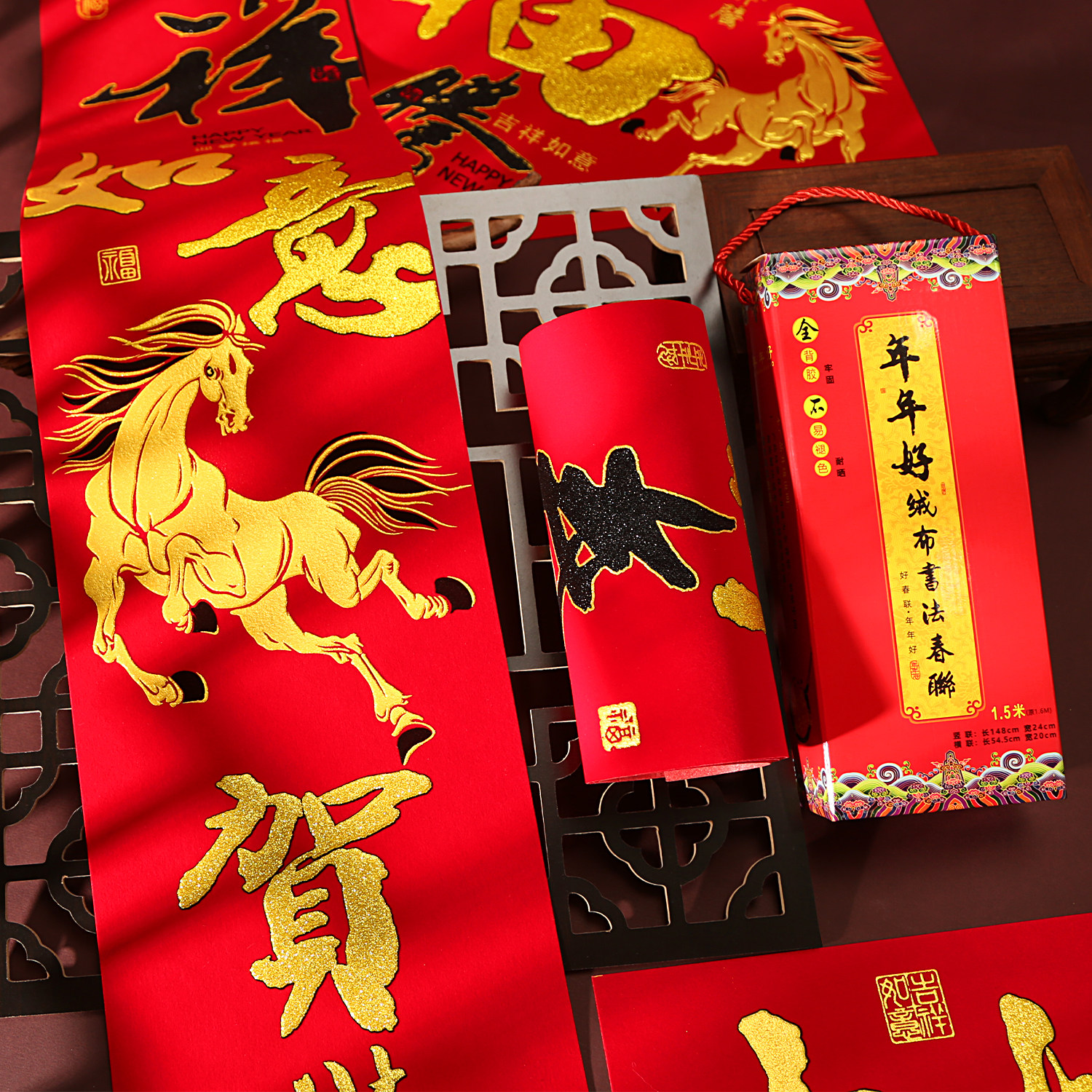 推荐理由:2026马年生肖绒布对联骏马春节对联别墅入户大门自带背胶金粉春联