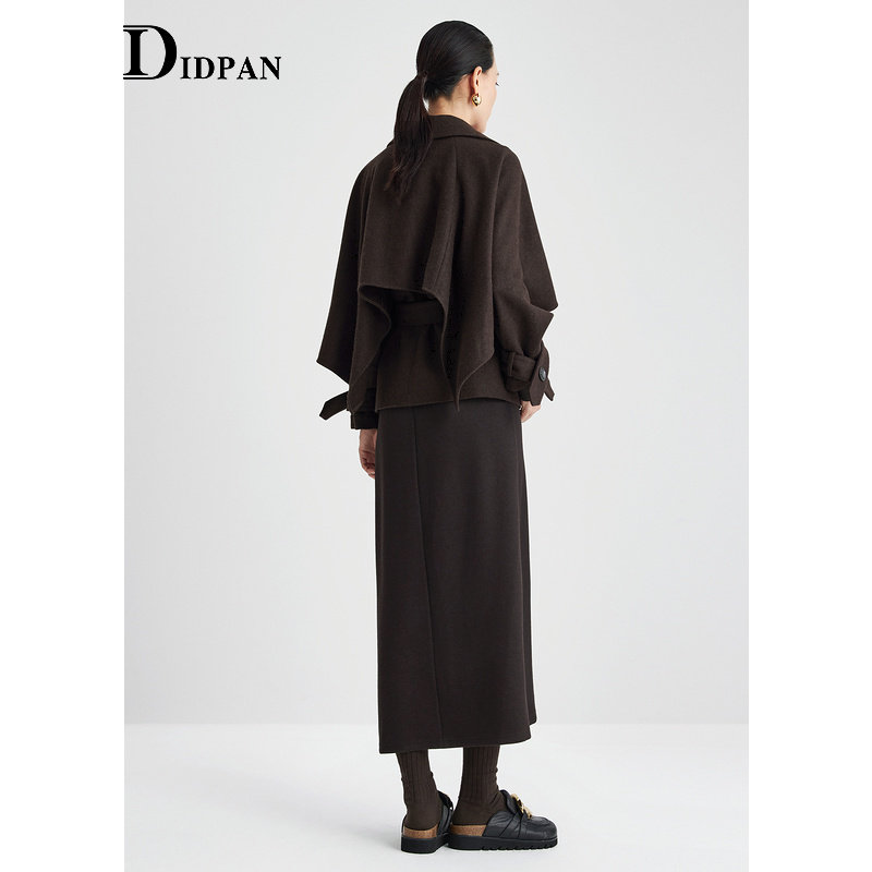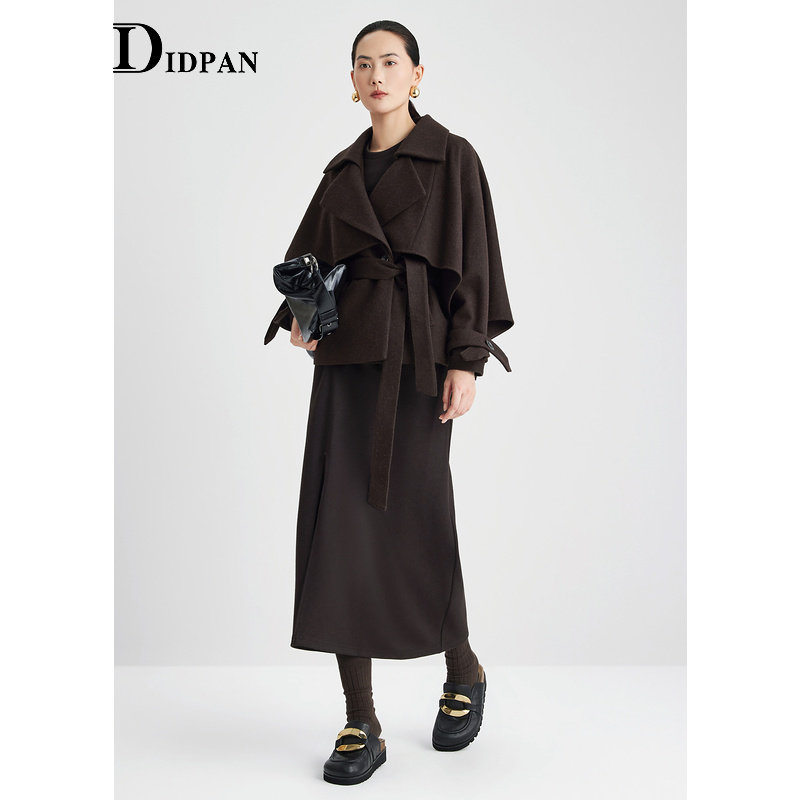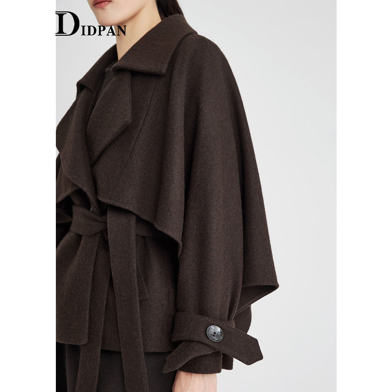 IDPAN风衣式短款羊毛外套冬季新款时尚职场通勤美拉德短大衣