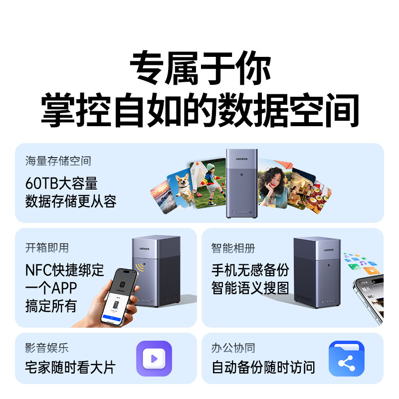 【重磅新品】绿联私有云DH2300双盘位NAS网络存储个人云AI家庭硬盘服务器NFC一碰连接相册备份手机平板扩容