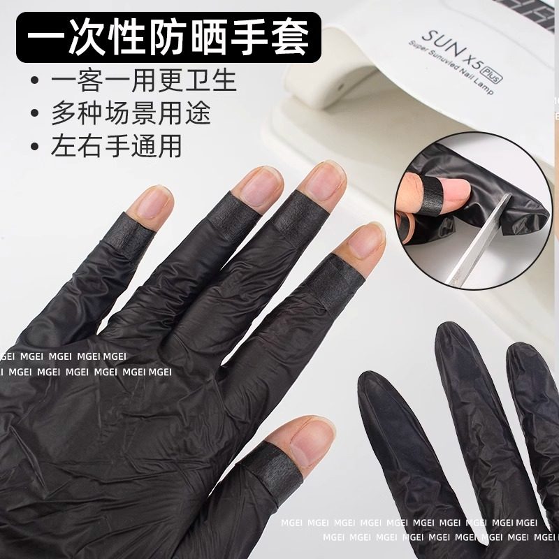 英科美甲防晒手套防护工具防烤黑专用一次性丁腈露指照灯做指甲店