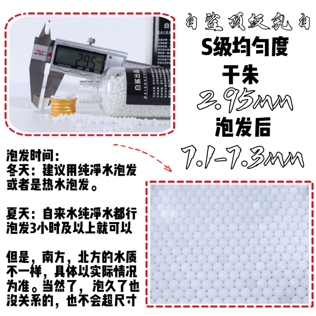 推荐理由:白鲨-新品高阶乳白水弹极限抗压20kg水弹7.3mm下场竞技乳白水弹