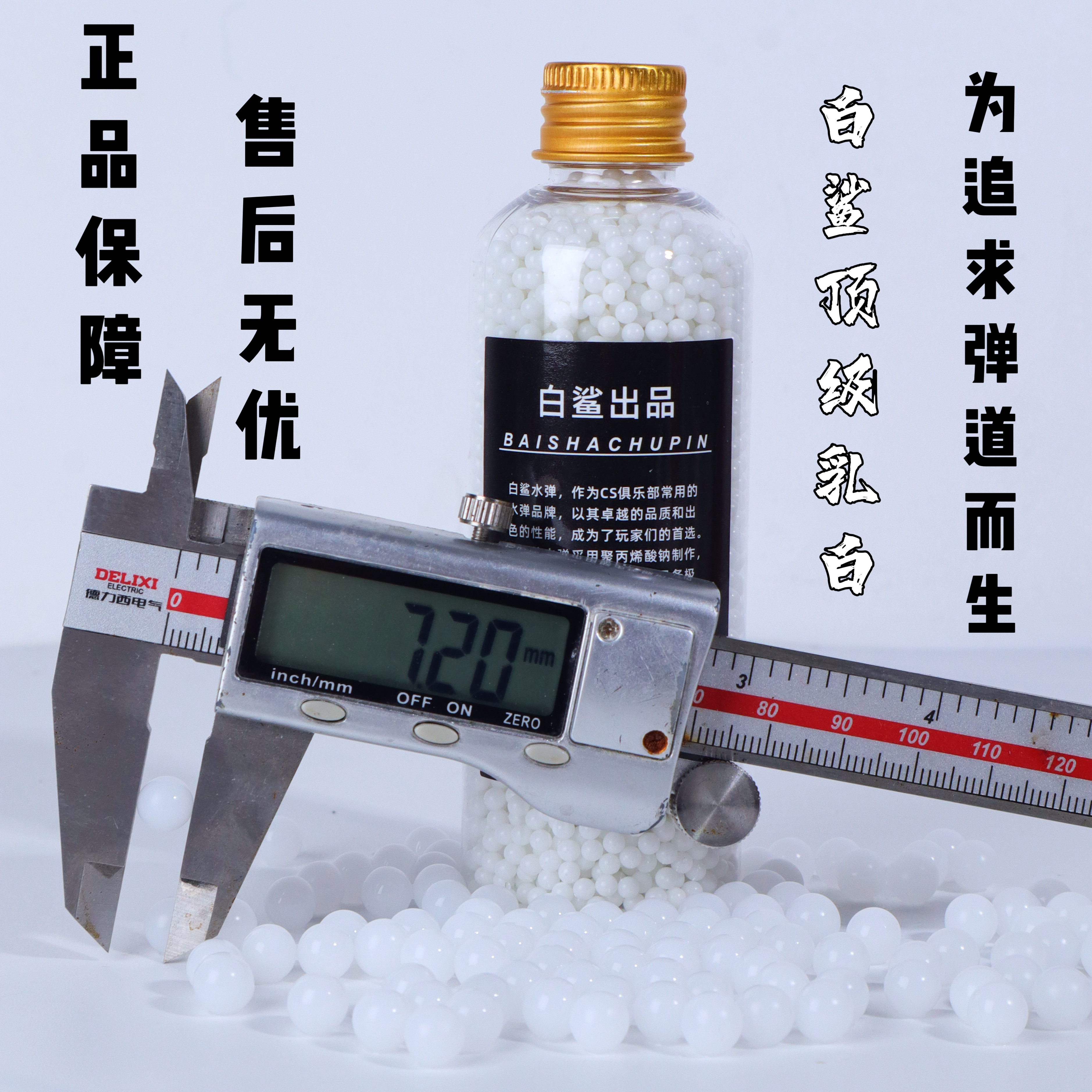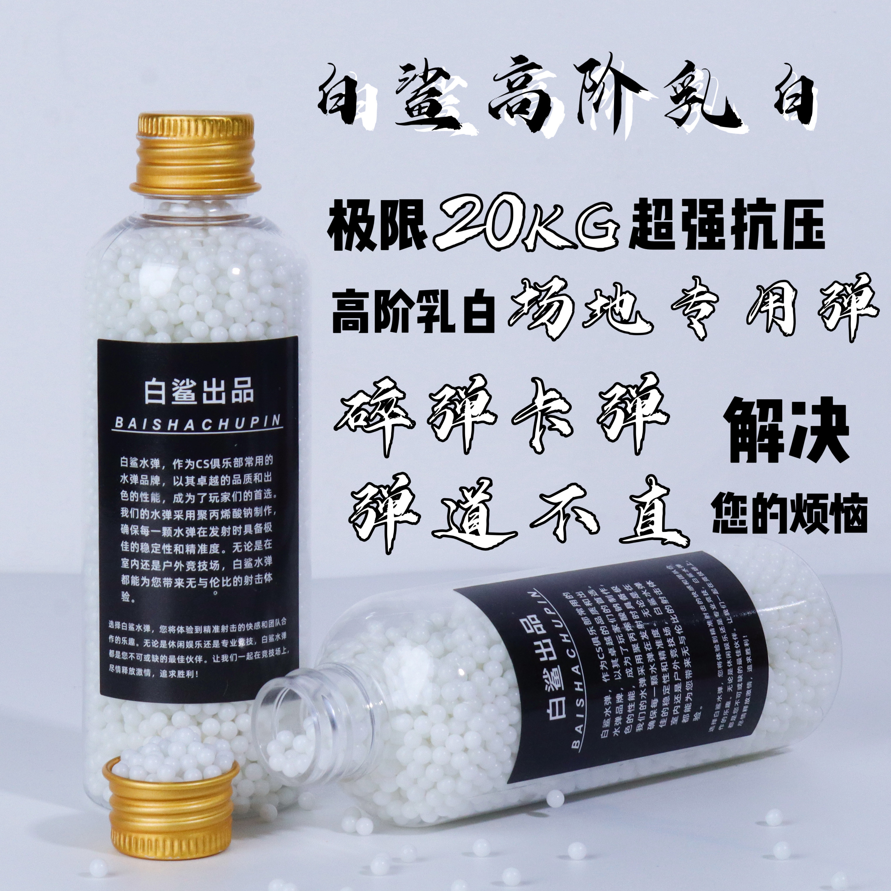 白鲨-新品高阶乳白水弹极限抗压20kg水弹7.3mm下场竞技乳白水弹