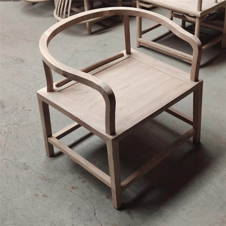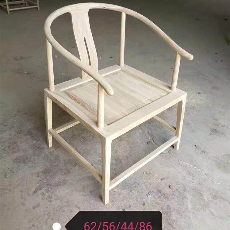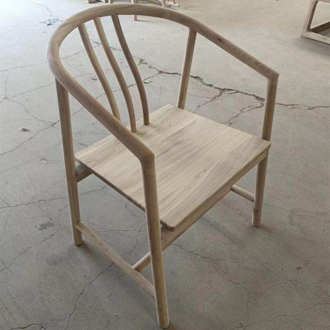 新中式圈椅白茬北榆木免漆围椅白胚扶手椅主人椅实木禅椅茶椅白坯