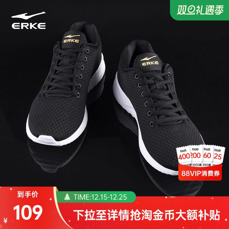鸿星尔克运动鞋冬季新款男鞋跑步鞋软底跑鞋爸爸休闲鞋中年黑鞋子