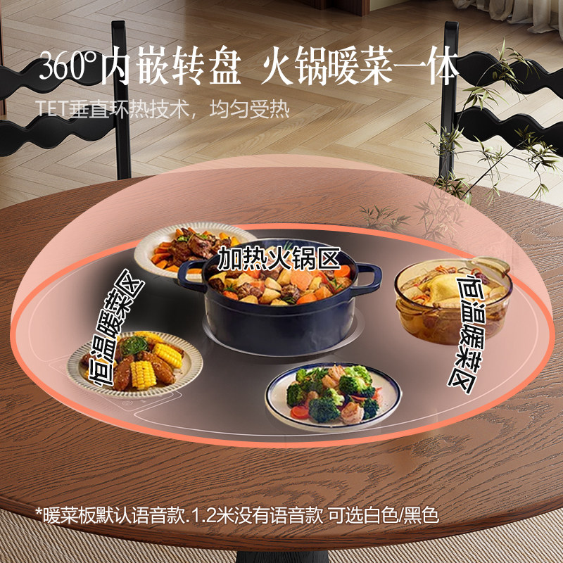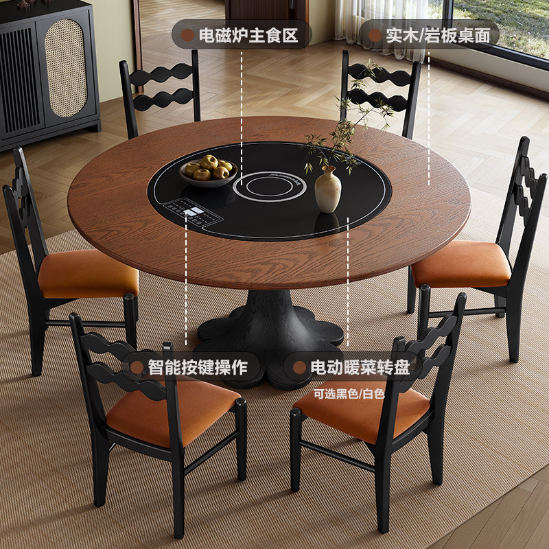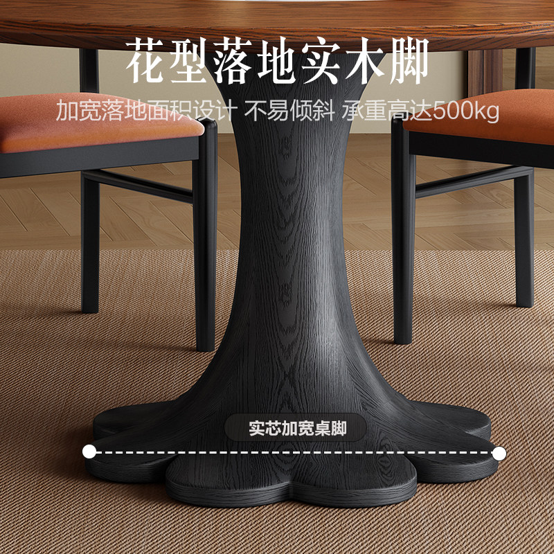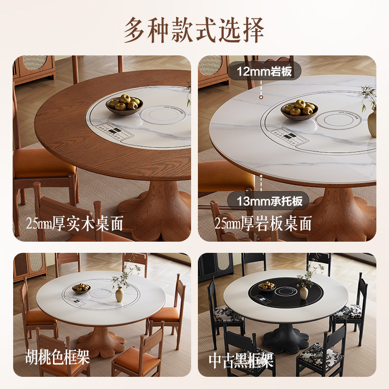 蓝色理想实木岩板餐桌椅组合现代简约家用小户型圆桌多功能轻奢