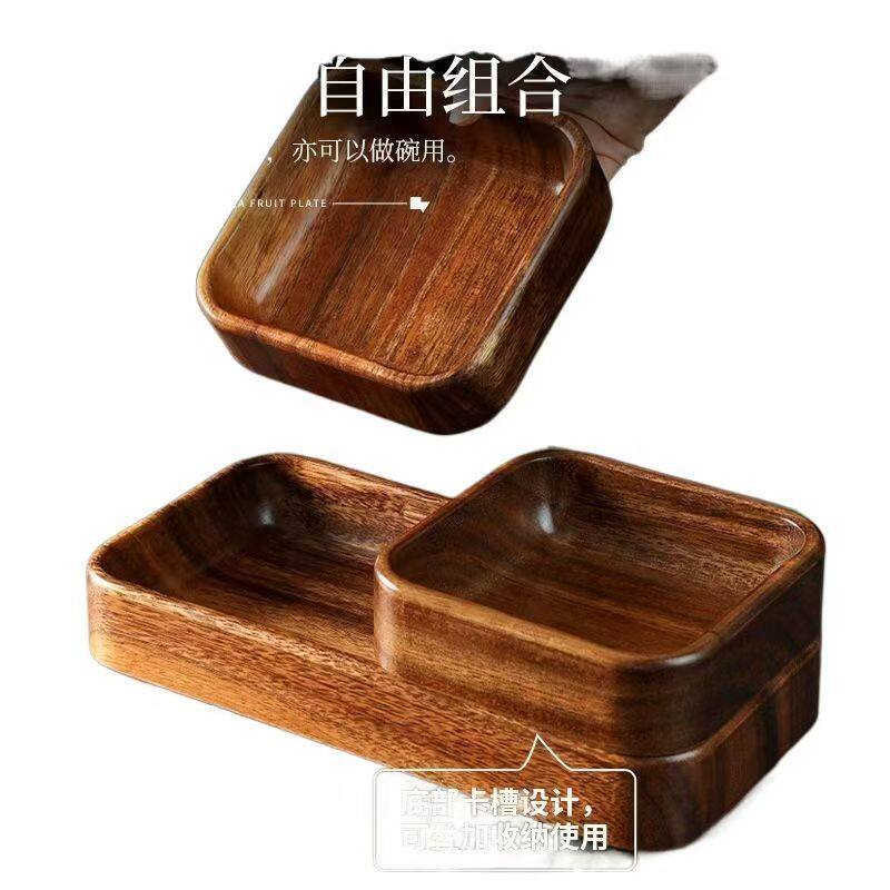 胡桃木家用日式木质托盘坚果零食果盘叠加盘子餐盘实木点心