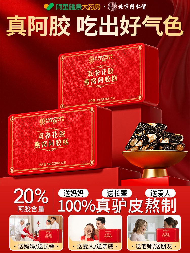 北京同仁堂红参阿胶糕手工礼盒补气补血正品官方旗舰店送礼盒年货