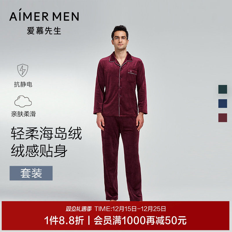 推荐理由:爱慕先生海岛绒抗静电情侣家居服套装男士睡衣秋冬可外穿本命年红