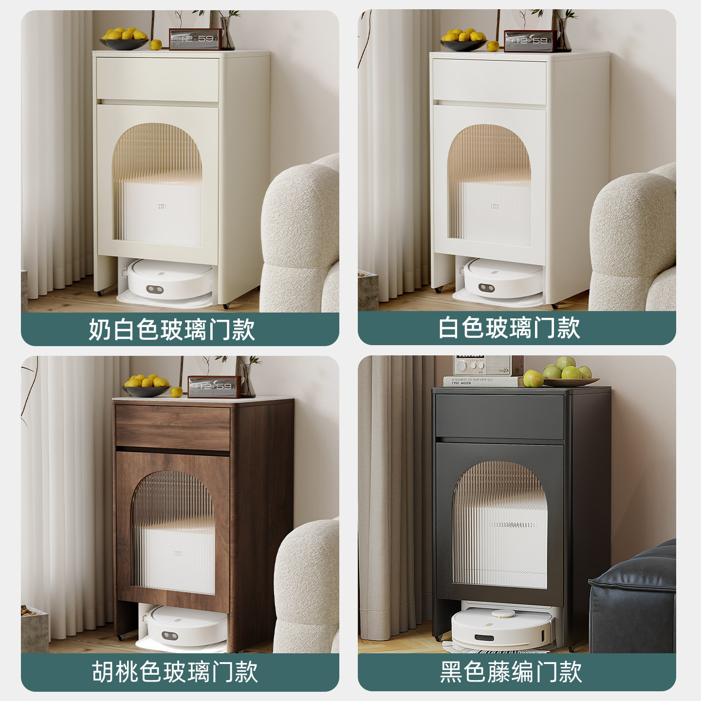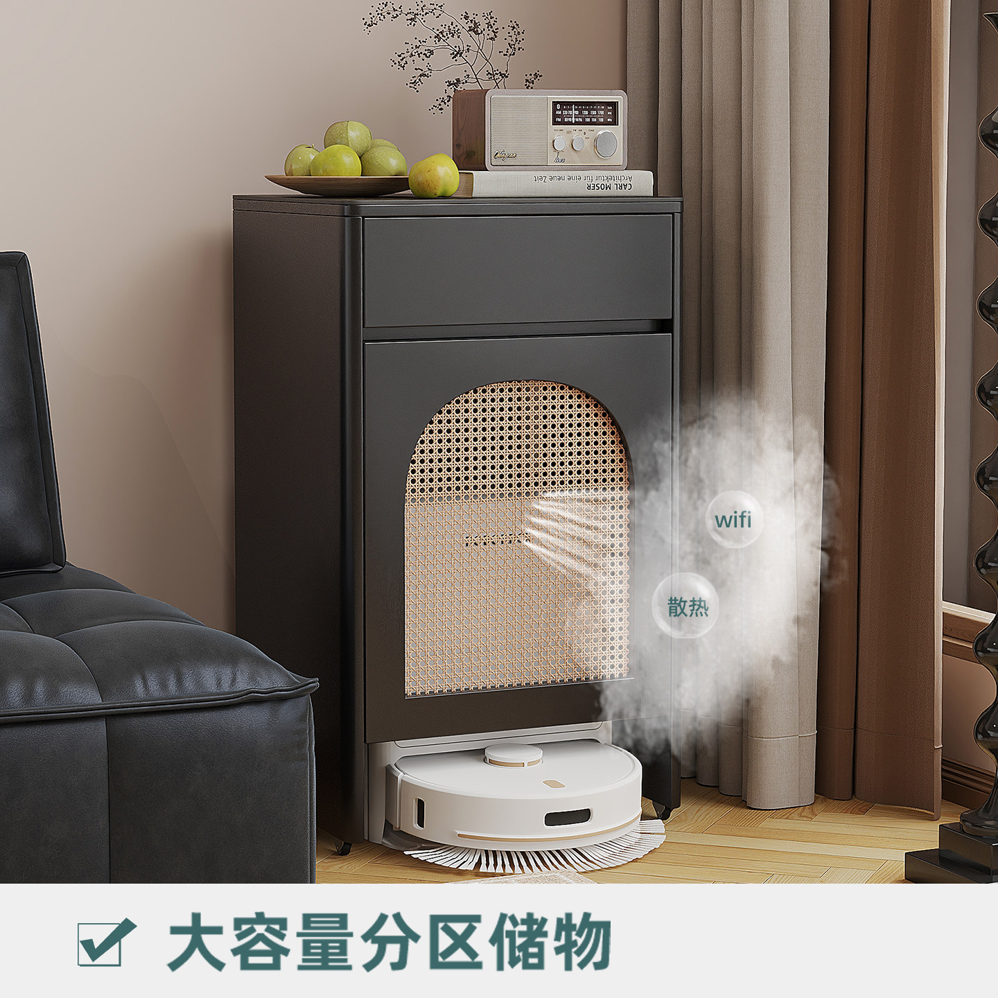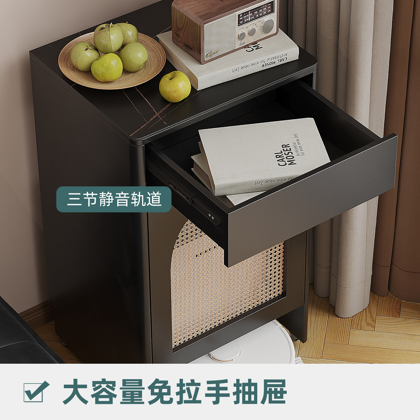 推荐理由:中古风扫地机器人置物柜藤编沙发边柜侧边几基站上方置物架收纳柜