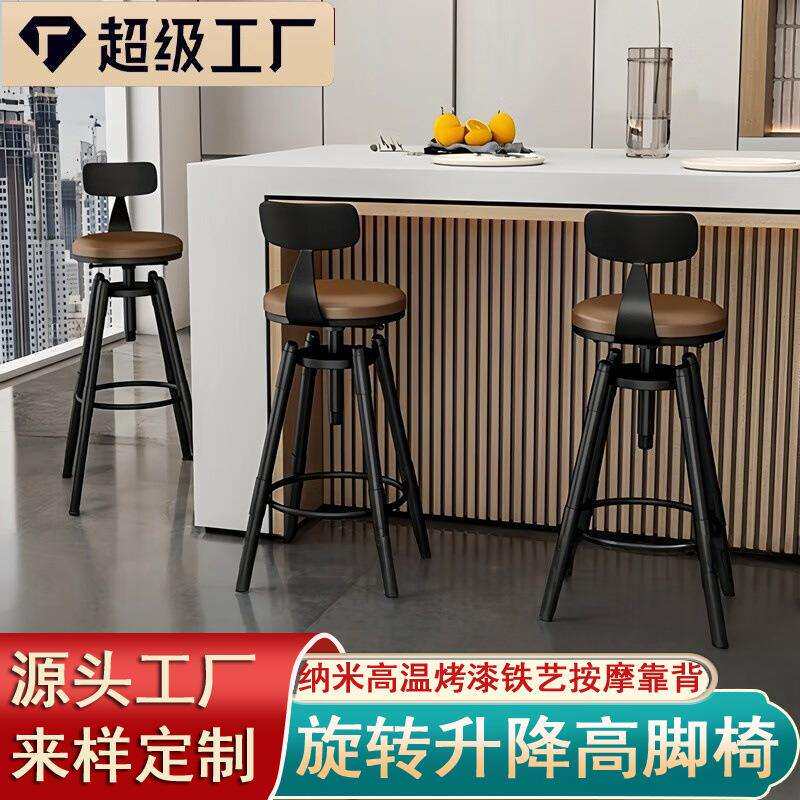 源头工厂铁艺旋转国潮升降椅轻奢酒吧椅复古高脚凳办公椅前台椅子