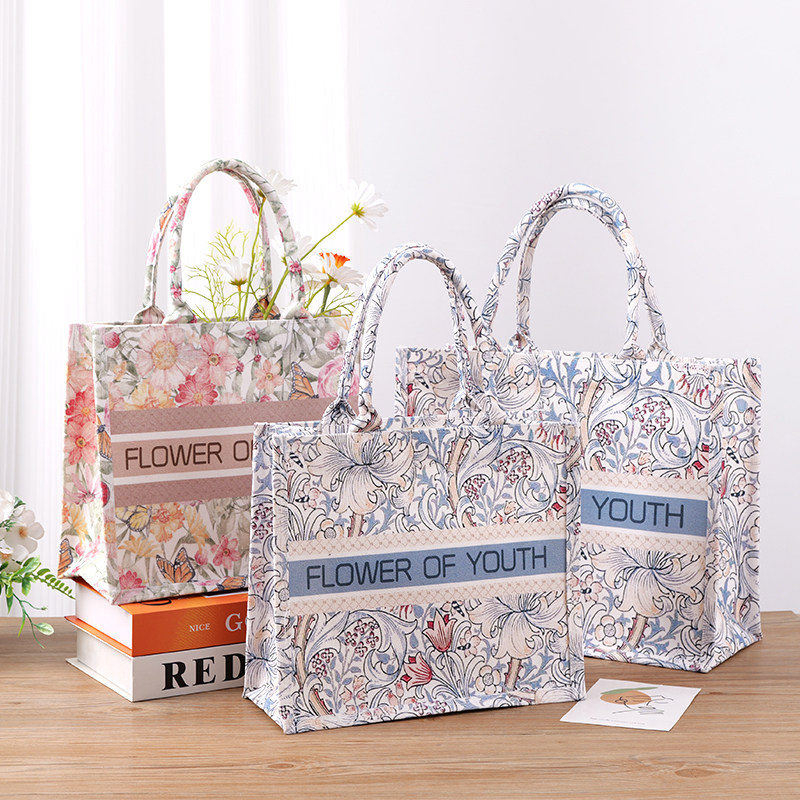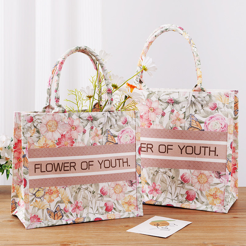 推荐理由:花蝴蝶帆布包女定制高级感防水手提袋大容量伴手礼袋购物礼品袋
