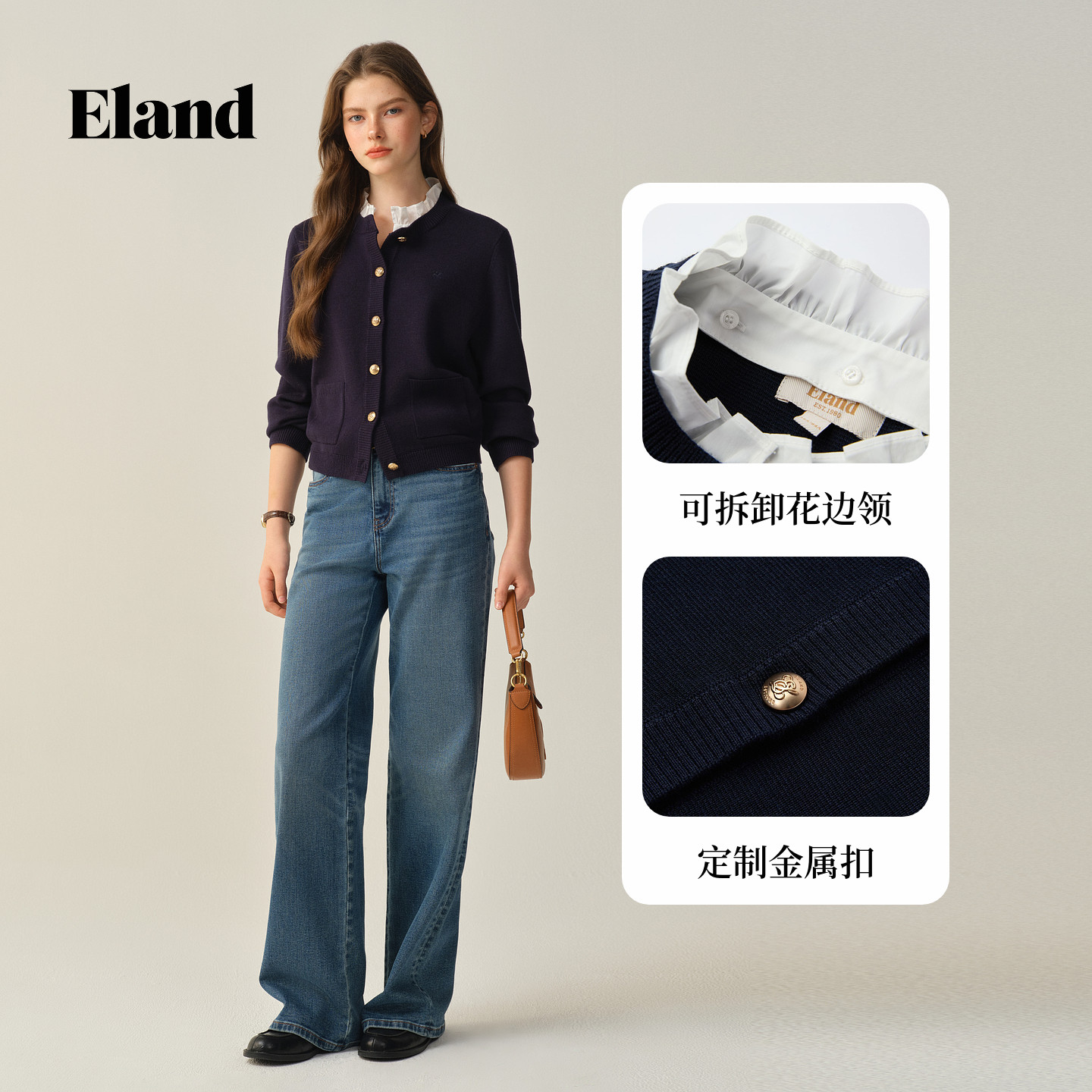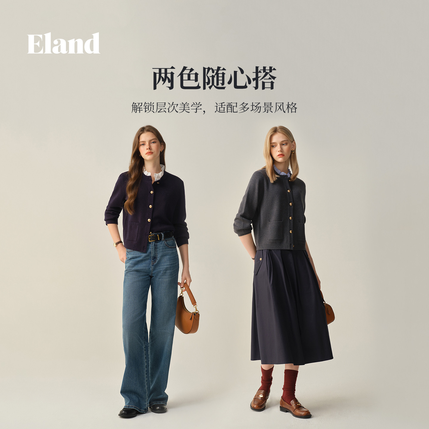 推荐理由:【可机洗羊毛】Eland衣恋毛针织衫女开衫单排扣外套2025冬季新款