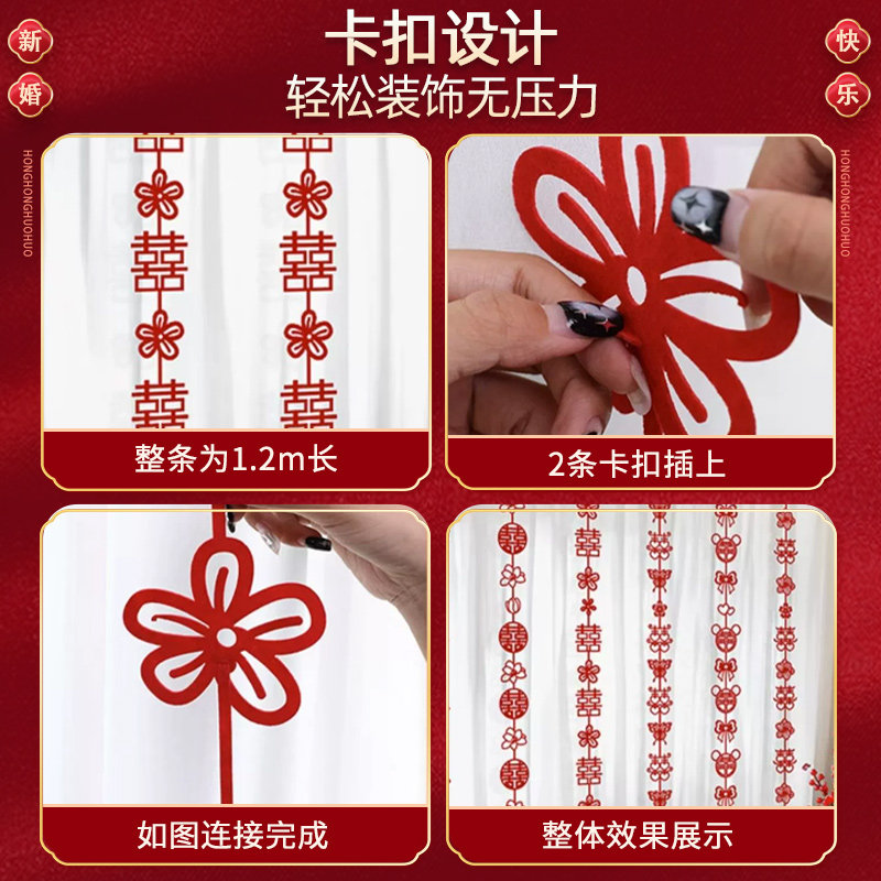 窗帘装饰结婚男方婚房布置拉花挂饰婚礼新房女方卧室客厅喜字门帘