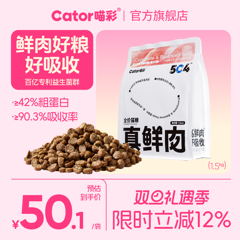 Cator喵彩鲜肉益生菌无谷鸡肉猫粮成幼猫蛋白通用营养1.5kg