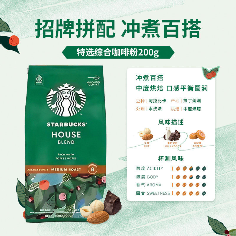 推荐理由:星巴克研磨咖啡粉特选综合阿拉卡比咖啡粉中度烘焙 200g