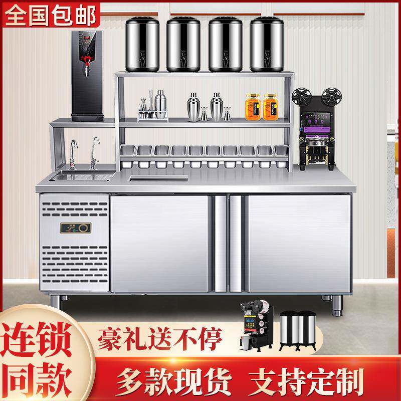 水吧台商用奶茶店设备全套水槽定制冷藏工作台饮品店操作台机器历史价格